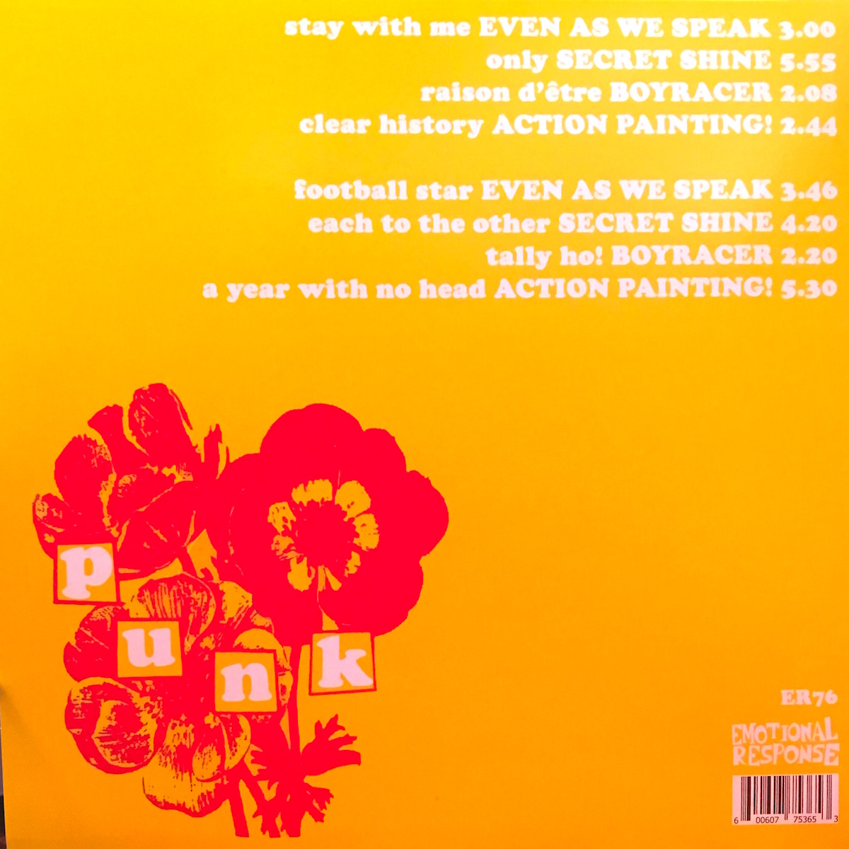 A1. Even As We Speak ‘Stay With Me’ A2. Secret Shine ‘Only’  A3. Boyracer ‘Raison d’Etre’ A4. Action Painting! ‘Clear History’